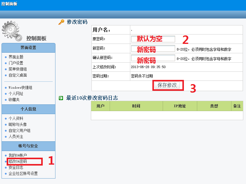 請新開用戶及時(shí)修改自己的OA登錄密碼